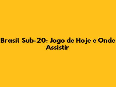 Onde Assistir ao Jogo do Brasil Sub-20?
