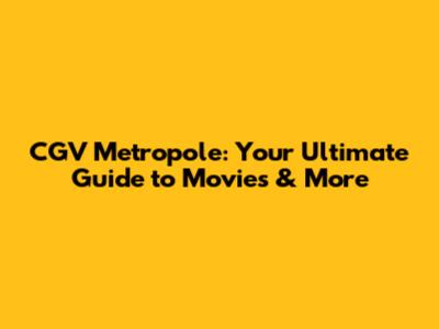 CGV Metropole: Your Ultimate Guide To Movies & More