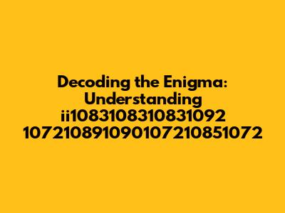 Hey guys! Ever stumbled upon a cryptic string of characters and felt like you've entered a secret code? Well, today we're diving deep into one such enigma: 'ii1083108310831092 107210891090107210851072'. This bizarre sequence might seem like gibberish at first glance, but trust me, there's likely a method to this madness. We're going to explore potential interpretations, break down the components, and hopefully shed some light on what it could possibly mean. So buckle up, grab your decoder rings, and let's get started on this exciting journey of linguistic and numeric exploration!