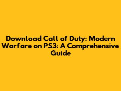Download Call Of Duty: Modern Warfare On PS3: A Comprehensive Guide