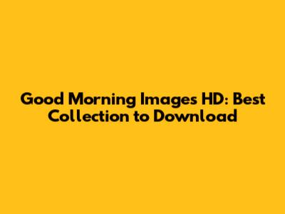 Why Good Morning Images HD Matter