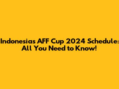 Indonesia's AFF Cup 2024 Schedule: Dates, Times & More!