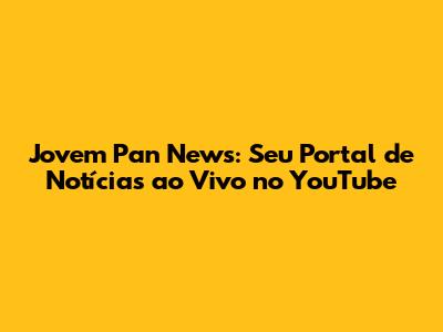 Aproveite a praticidade de acompanhar as notícias em tempo real, interaja com outros espectadores, participe das discussões e compartilhe o conteúdo da Jovem Pan nas suas redes sociais. A Jovem Pan oferece uma experiência informativa completa e enriquecedora, com uma cobertura abrangente dos temas mais importantes. Se você busca se manter atualizado sobre política, economia, esportes, cultura e muito mais, a Jovem Pan News é o canal ideal. Não perca tempo, acesse o YouTube, encontre a Jovem Pan News e comece agora mesmo a se informar com credibilidade e agilidade.