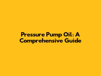 Pressure Pump Oil: A Comprehensive Guide