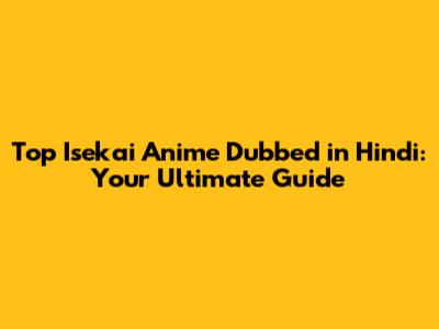 Top Isekai Anime Dubbed In Hindi: Your Ultimate Guide