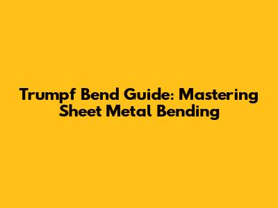 Trumpf Bend Guide: Mastering Sheet Metal Bending