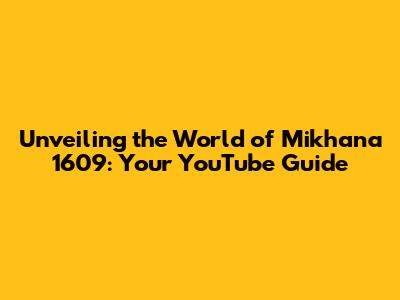 Unveiling The World Of Mikhana 1609: Your YouTube Guide